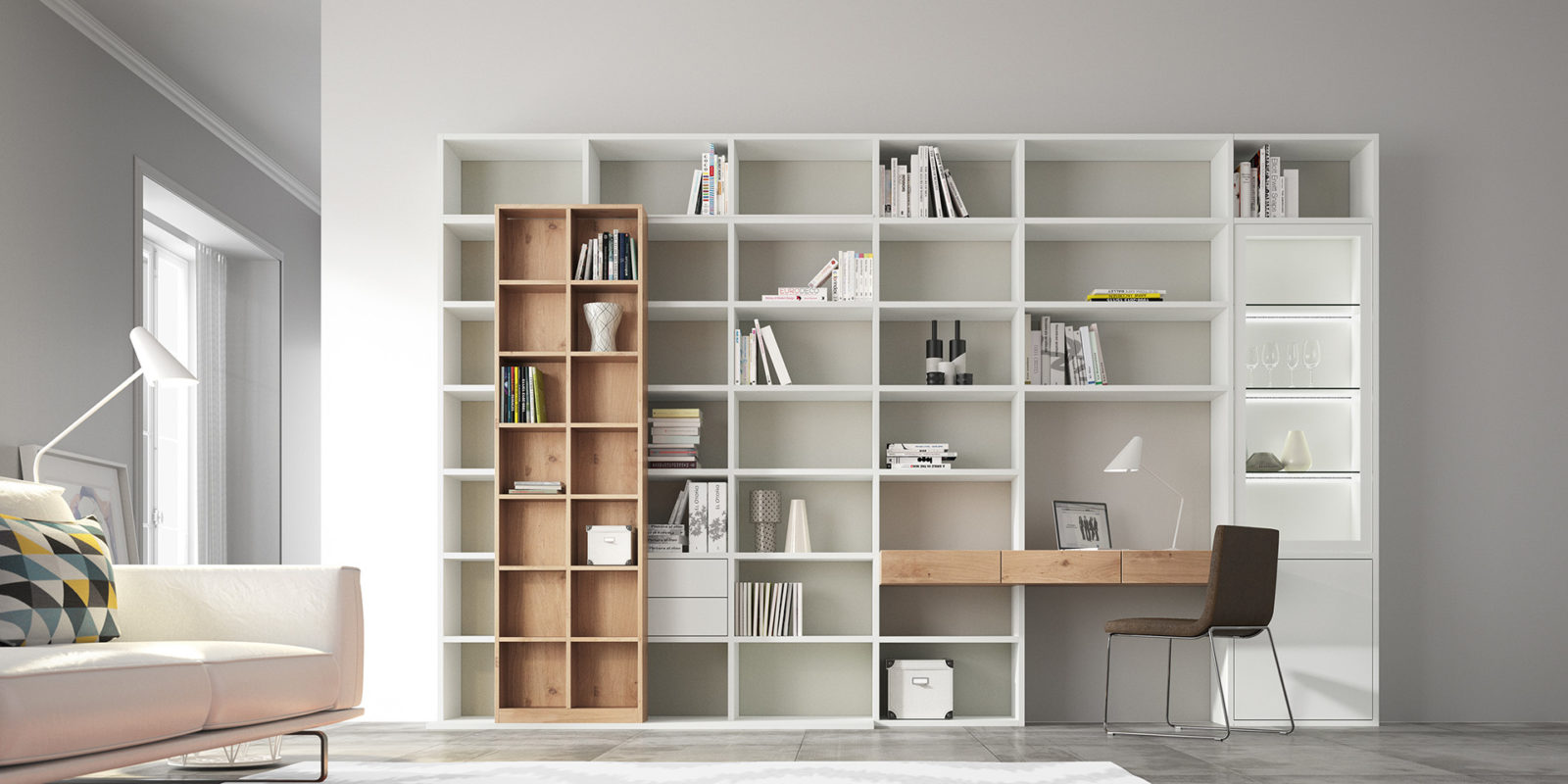 - Regallösungen mit integriertem Arbeitsplatz